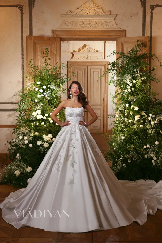 At White Canvas Bride, our bridal collection brings together some of the world's most celebrated designers to create unforgettable wedding day moments. Discover the clean, modern elegance of Yedyna, the bold luxury of Demetrios, and the regal glamour of Vladiyan. For brides who dream of couture artistry, Fler offers timeless sophistication, while Victoria Soprano delivers European elegance with couture-inspired detail. Each gown is crafted with exquisite fabrics and impeccable design, ensuring every bride feels radiant, confident, and uniquely herself. Explore our bridal collection and find the designer gown that captures your vision for a truly extraordinary day.