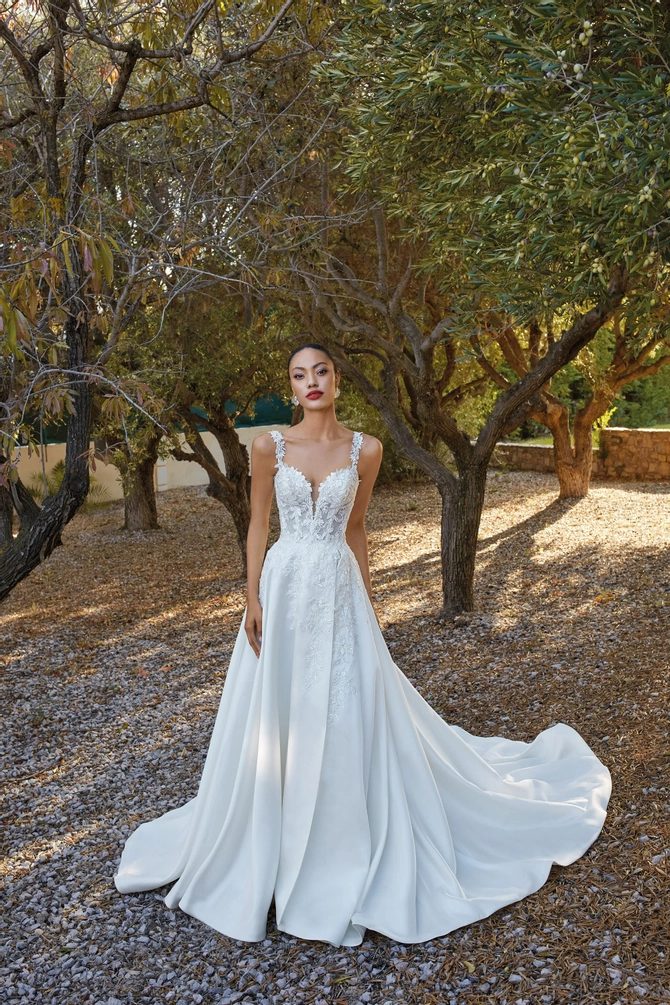 At White Canvas Bride, our bridal collection brings together some of the world's most celebrated designers to create unforgettable wedding day moments. Discover the clean, modern elegance of Yedyna, the bold luxury of Demetrios, and the regal glamour of Vladiyan. For brides who dream of couture artistry, Fler offers timeless sophistication, while Victoria Soprano delivers European elegance with couture-inspired detail. Each gown is crafted with exquisite fabrics and impeccable design, ensuring every bride feels radiant, confident, and uniquely herself. Explore our bridal collection and find the designer gown that captures your vision for a truly extraordinary day.