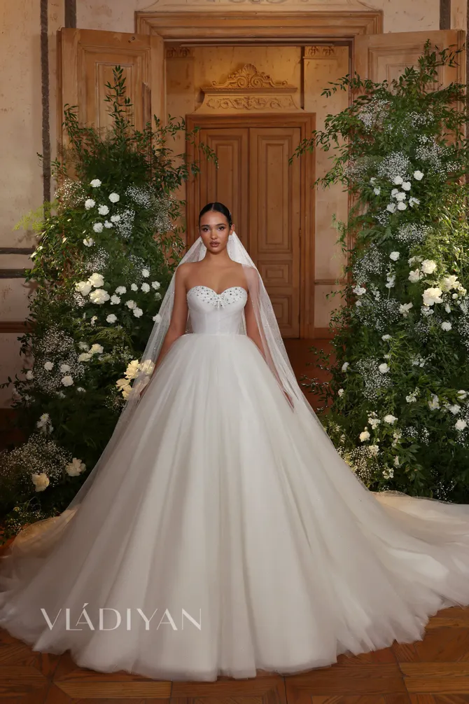 At White Canvas Bride, our bridal collection brings together some of the world's most celebrated designers to create unforgettable wedding day moments. Discover the clean, modern elegance of Yedyna, the bold luxury of Demetrios, and the regal glamour of Vladiyan. For brides who dream of couture artistry, Fler offers timeless sophistication, while Victoria Soprano delivers European elegance with couture-inspired detail. Each gown is crafted with exquisite fabrics and impeccable design, ensuring every bride feels radiant, confident, and uniquely herself. Explore our bridal collection and find the designer gown that captures your vision for a truly extraordinary day.