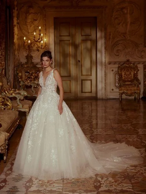 At White Canvas Bride, our bridal collection brings together some of the world's most celebrated designers to create unforgettable wedding day moments. Discover the clean, modern elegance of Yedyna, the bold luxury of Demetrios, and the regal glamour of Vladiyan. For brides who dream of couture artistry, Fler offers timeless sophistication, while Victoria Soprano delivers European elegance with couture-inspired detail. Each gown is crafted with exquisite fabrics and impeccable design, ensuring every bride feels radiant, confident, and uniquely herself. Explore our bridal collection and find the designer gown that captures your vision for a truly extraordinary day.