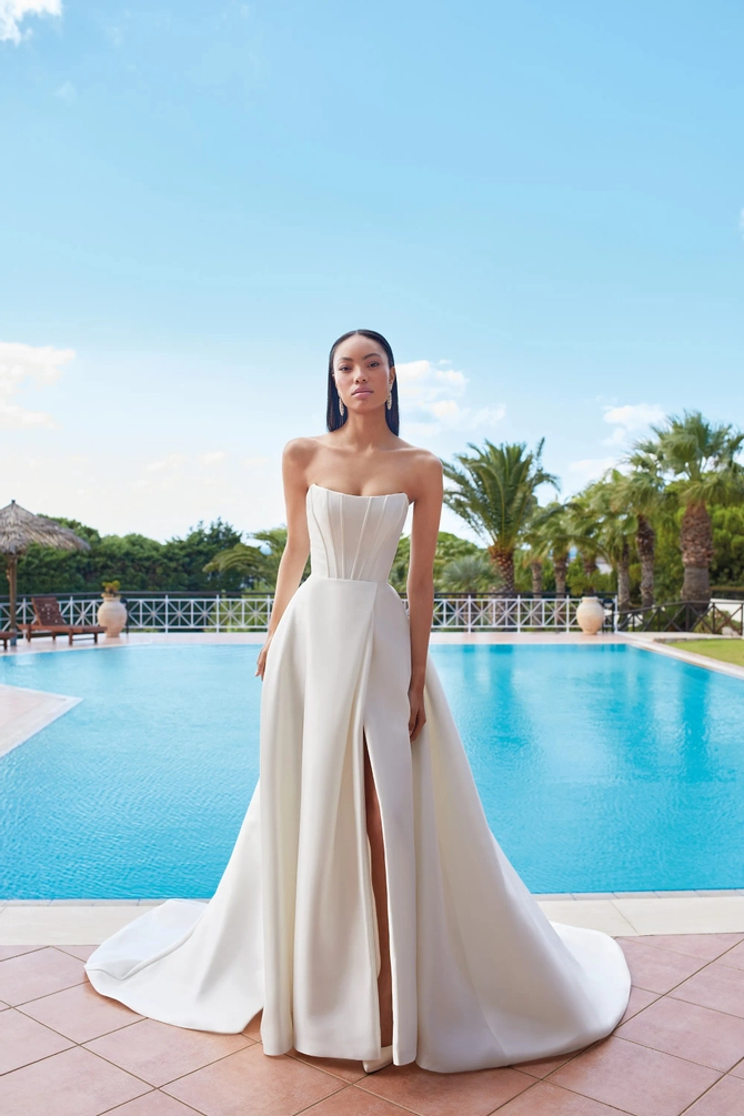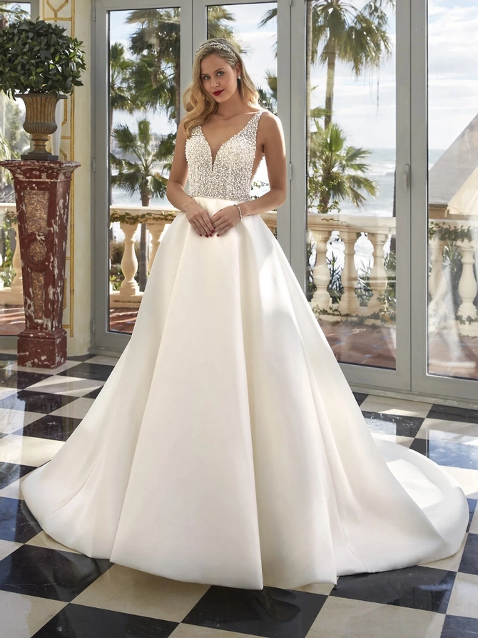 At White Canvas Bride, our bridal collection brings together some of the world's most celebrated designers to create unforgettable wedding day moments. Discover the clean, modern elegance of Yedyna, the bold luxury of Demetrios, and the regal glamour of Vladiyan. For brides who dream of couture artistry, Fler offers timeless sophistication, while Victoria Soprano delivers European elegance with couture-inspired detail. Each gown is crafted with exquisite fabrics and impeccable design, ensuring every bride feels radiant, confident, and uniquely herself. Explore our bridal collection and find the designer gown that captures your vision for a truly extraordinary day.